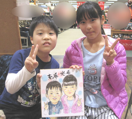 こちらも元気な姉弟ちゃん。お話大好きな弟くん、漫才かと思うほどにたくさんお話してくれました!久しぶりに笑いながら似顔絵を描きましたよ〜。