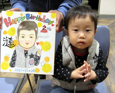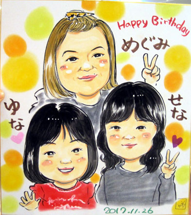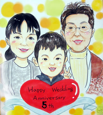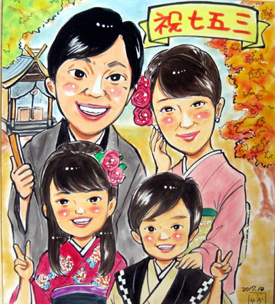 こちらは家族での記念似顔絵です。これからも家族でたくさんの思い出を作ってくださいね。