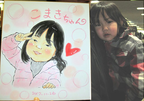 2種の似顔絵ですが、同じモデルちゃんです。ほんの数カ月でちょっと驚くほどの成長ぶりにびっくり。いつもご依頼いただくスタッフの方のお孫ちゃんです。