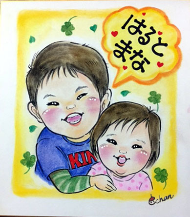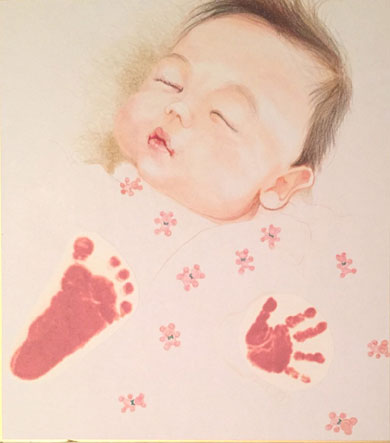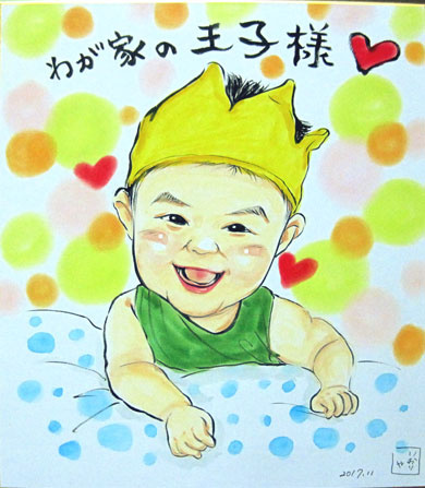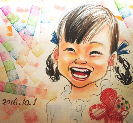 お誕生日記念に初似顔絵です。とっても愛らしいお子さんでした。これからの成長が楽しみです。