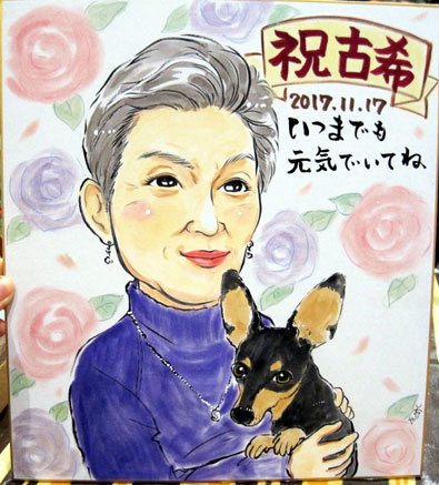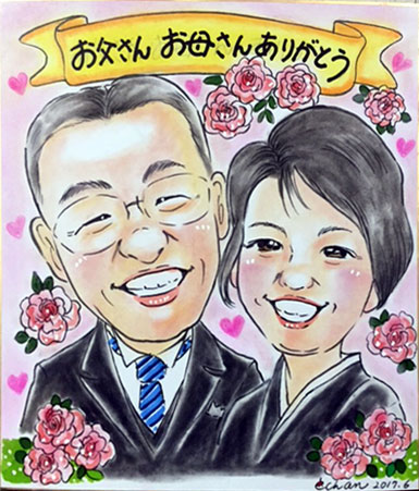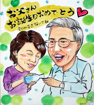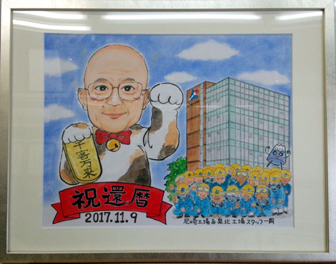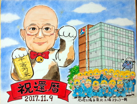 会社の皆さんでの還暦祝いとのこと。面白く描いてくださいというなかなか面白い発注でした。
