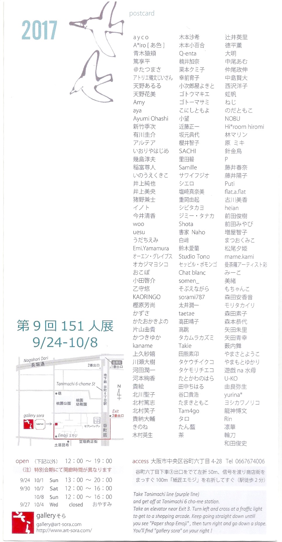 2017年9月18日 (祝月)10:00−17:00(人数に到達次第終了)