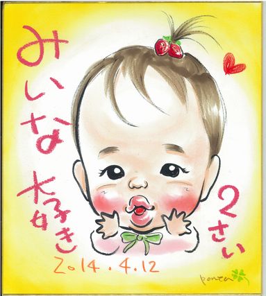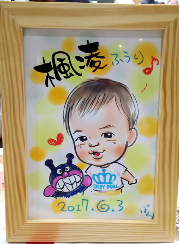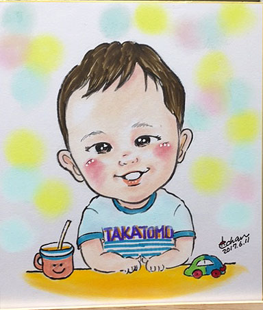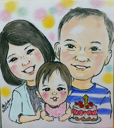 初めての誕生日記念に。これからも毎年記念になって、似顔絵を描きにいらしてくださいね〜。