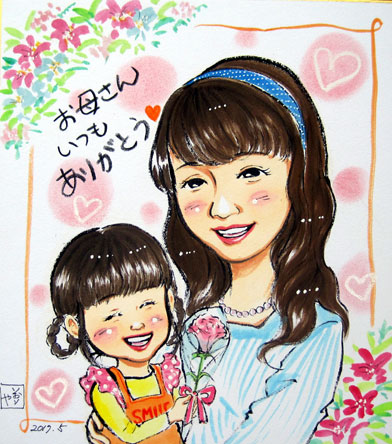 母の日のプレゼントに似顔絵をご依頼くださった方も多く、ありがとうございました。