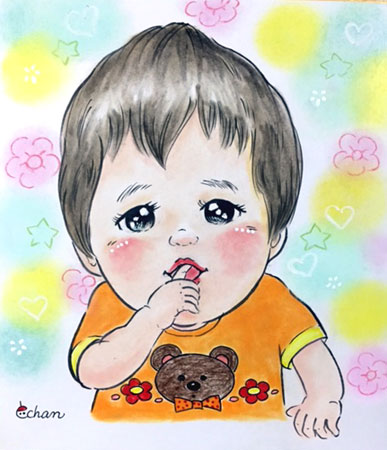モノトーンでのご依頼です。いつもフルカラーで描くため、シンプルな絵にはドキドキしますねえ。かわいらしい子供さんの成長記録の一枚になるといいなあ。