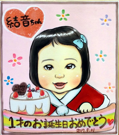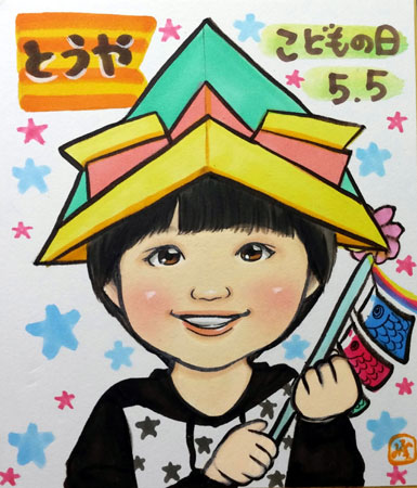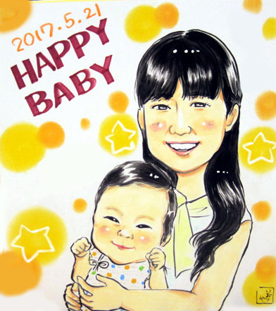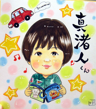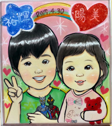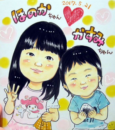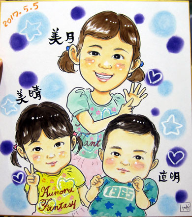 毎年描かせていただいているリピーターのお客様。今年は長男くんの初めての似顔絵ですね。