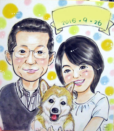 ご両親の似顔絵のご注文をいただきました。犬はちょっと苦手なんですけどね笑。