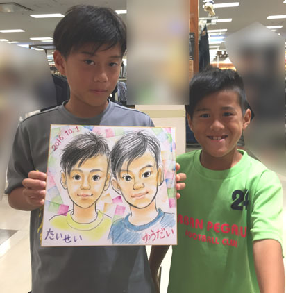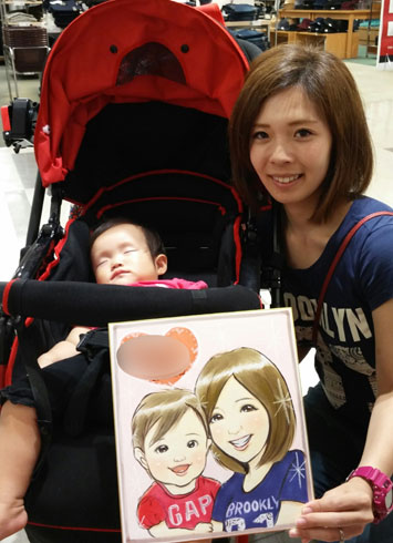 親子さんでの似顔絵記念。すっかりおねむになってしまいましたけど、これからの成長が楽しみですね。次回は是非ご家族でお待ちしておりますよ。