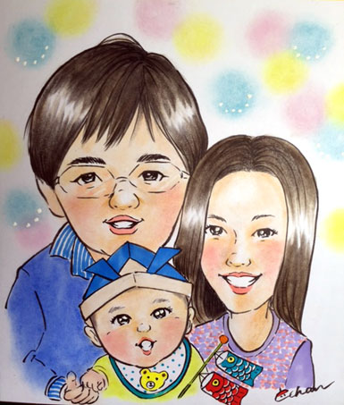 特に家族での初めて似顔絵は、描かせていただくこちらも、お客様にも初めてのことなので
