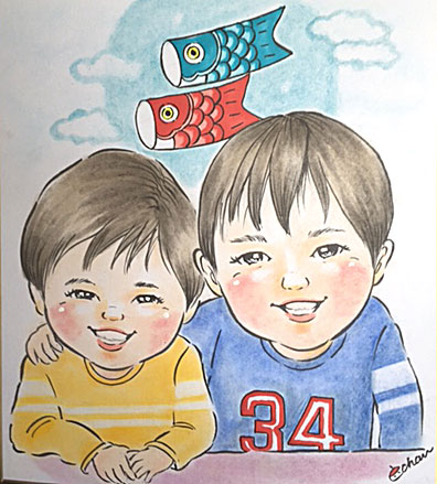 可愛らしい兄妹の似顔絵ですね。お兄ちゃんは途中で興味津々なのか、何度も似顔絵を見に来てました。