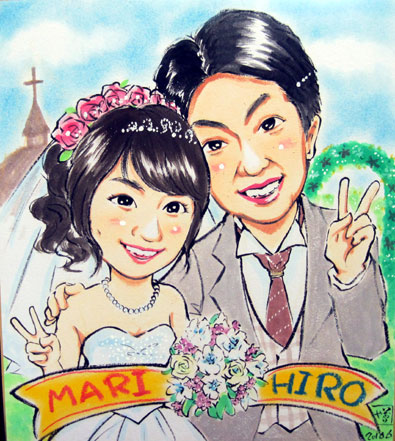 お二人とも優しいタッチのパステル調の似顔絵です。