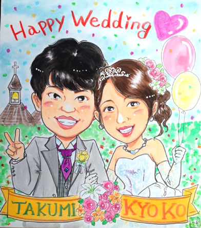 先月のご依頼の似顔絵で、挙式前だったのでお披露目できなかったのですが、挙式が終わりましたので、公開OKということで。