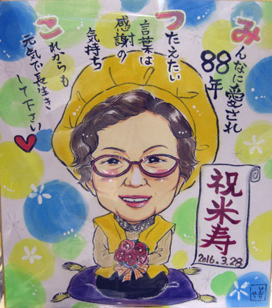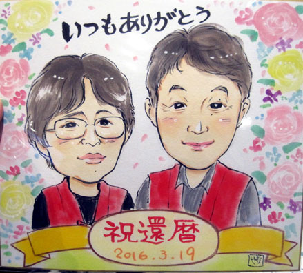 こちらは米寿のお祝いとお母さんのお誕生日祝いの似顔絵をご依頼いただきました。