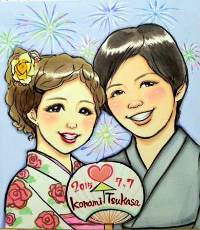 お天気はよかったので、素敵な1日になったことでしょうか?これからもお二人の末長い時間を大切にして、また時には似顔絵を描きにいらしてくださいませ〜〜。