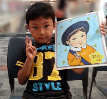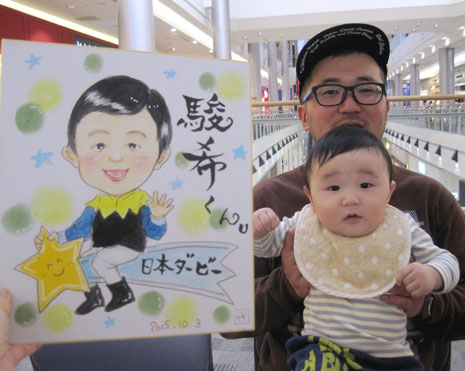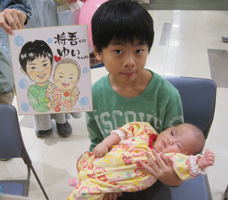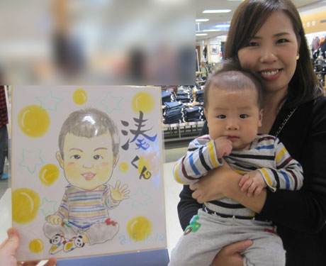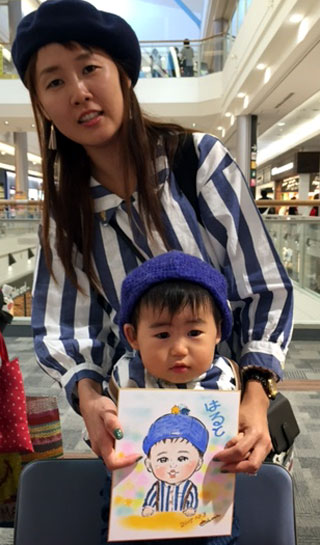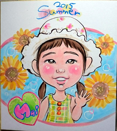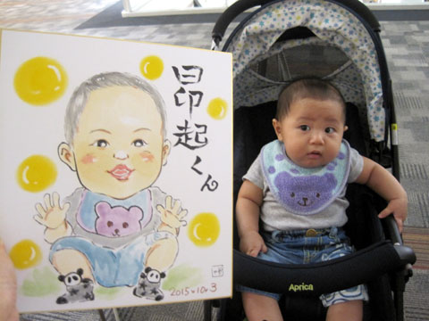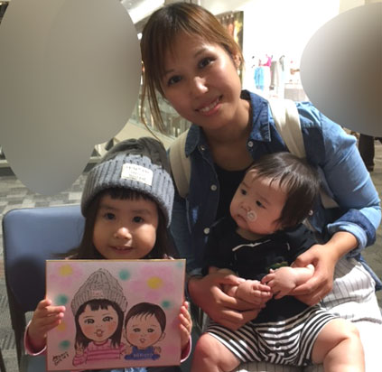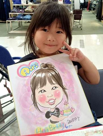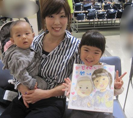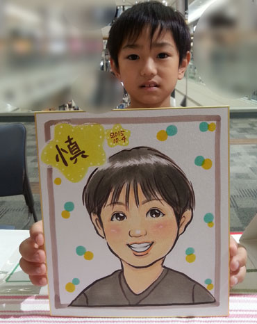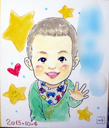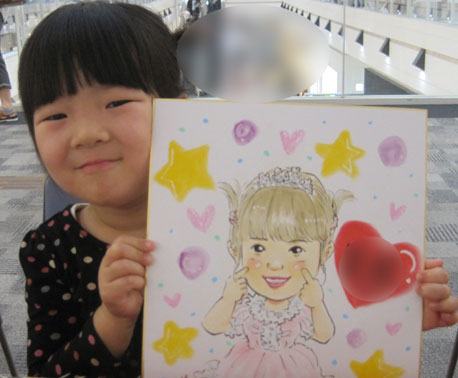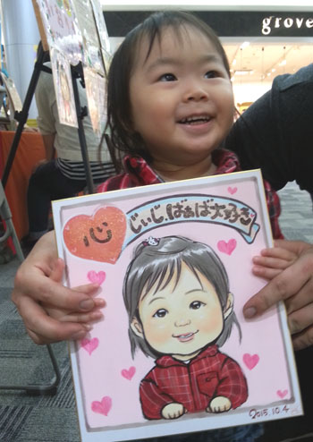 お子さんの似顔絵を描かせていただきました。可愛らしくて描いててもこちらまでニコニコになりますね。