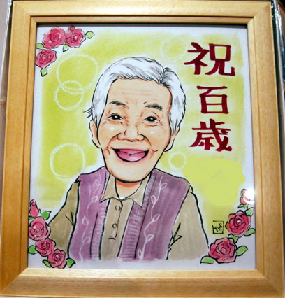 記念すべき百歳のお祝いに!とのご要望。描いてる私もあやかりたいです〜。