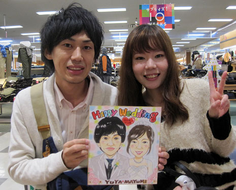 明日明後日は連休もあって、大変混雑すると思われます。そのため、似顔絵の営業時間が1時間早くなりました。ご来店の皆様は、4Fの似顔絵コーナーにて受付をよろしくお願い致します。