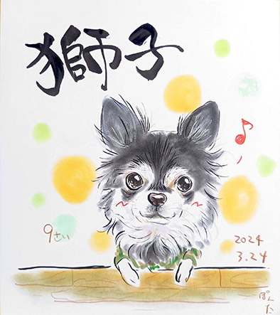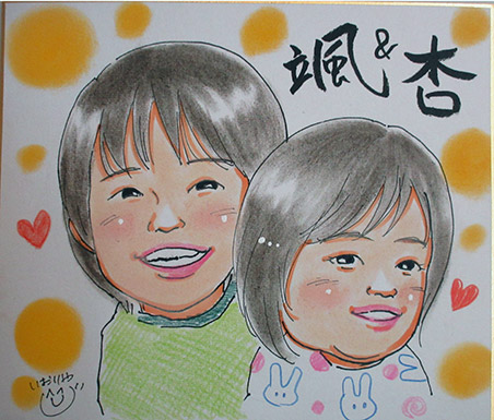 似顔絵は、ミニサイズの色紙とハガキにてお描きします。
