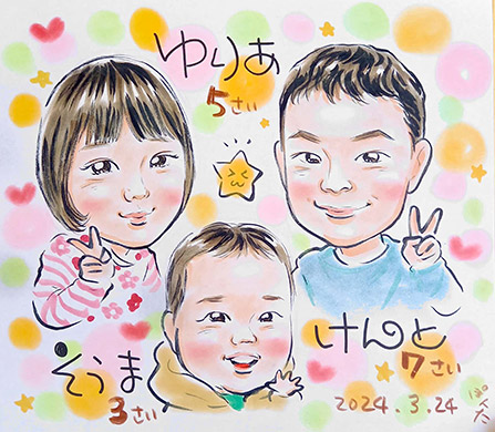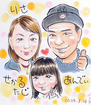 現在インターネットからのご注文依頼で似顔絵をお描きしております。