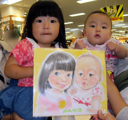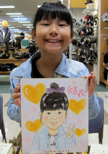 二日間来ていただいた裕美さんの似顔絵ギャラリーです。可愛らしい、笑顔の微笑ましい感じが大変好評です。また来月もお越しになりますので、宜しかったら是非とも皆様のお越しをお待ちして居ります。家族似顔絵、子供の記念似顔絵などなど、ありがとうございました。