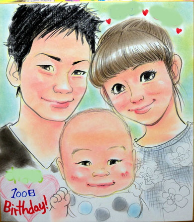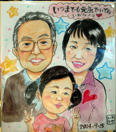 家族での似顔絵。お子さんの記念に・・・ということでした。是非是非又来年も成長の記録としてお越し下さるのをお待ちしてま〜す。