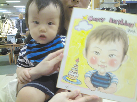 この日はちょっとゆっくり目の日だったので、画像自体は少ないのですが、面白い事におこちゃんは1歳の記念の似顔絵と言うのが重なって、びっくりびっくり!!。しかも、YUKIさんと同じお誕生日の方もあったそうで・・・。これも縁なんでしょうねえ。