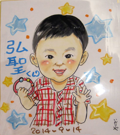 似顔絵は初めてのおこちゃんでした。とっても可愛らしいお目目のクリリとした男の子。