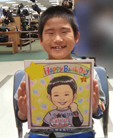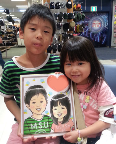 こちらのお客様は、なんと四年前にお兄ちゃんを描かせて頂きまして、今回、又同じ時期に弟君を描かせて頂きました!しかも、前に描いたお兄ちゃんの似顔絵もご持参頂きました。