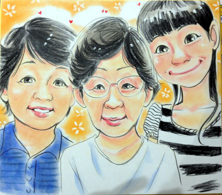 3姉妹のようですが、3世代です。美人家系なんですね、きっと。素敵に皆さん年齢を差兼ねていらして、羨ましいですね〜。どうぞこれからも元気で楽しくたくさん笑ってお過ごしくださいね!