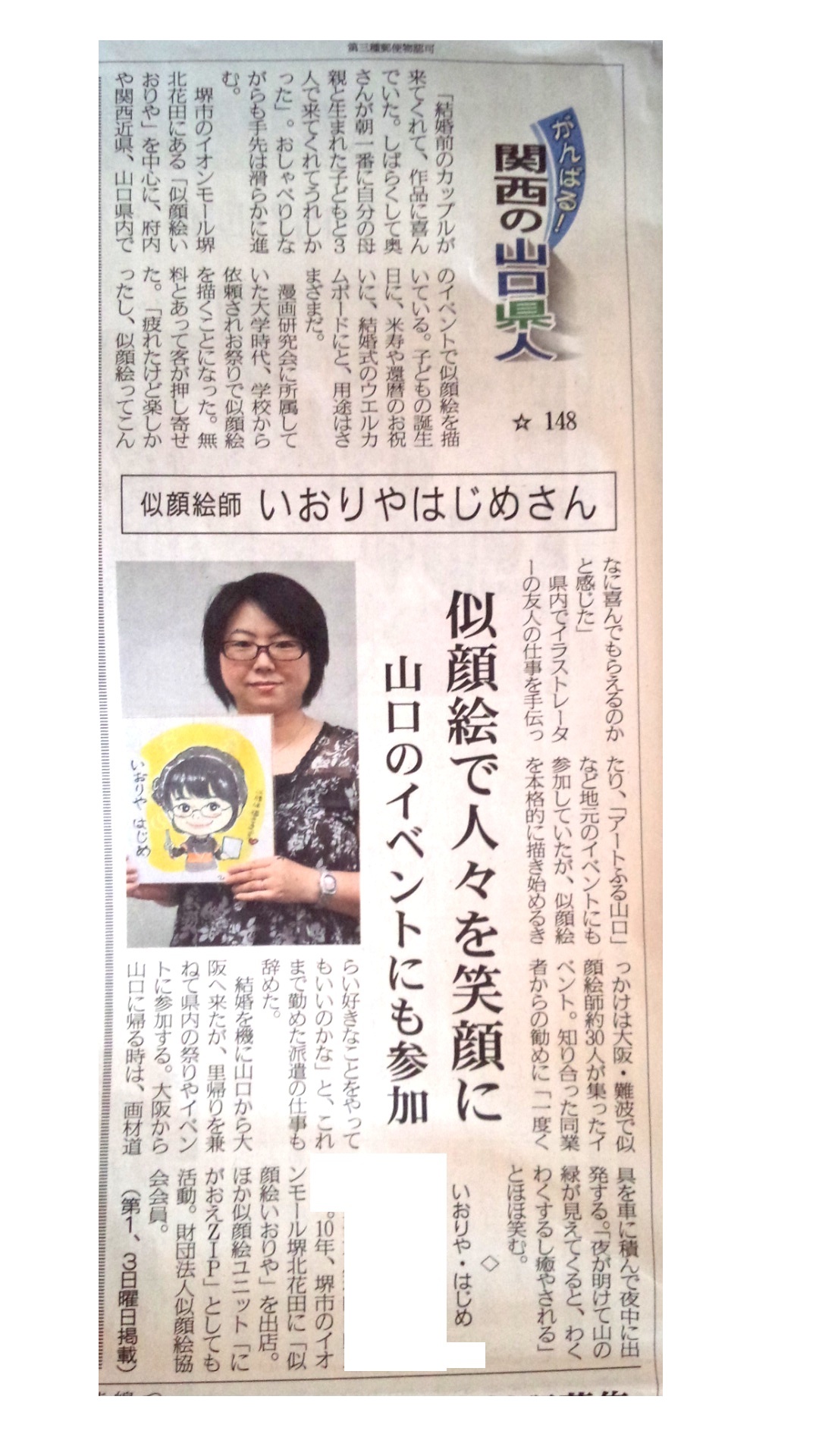 堺・南大阪を中心とした関西在住の似顔絵師「いおりや」のブログです。商業施設や企業イベント、ネット注文等も承ります。似顔絵やアートイベント情報等、身近なアートや似顔絵をご紹介します。よろしければ、イベントのご依頼やコメントで感想などもお待ちしております。2009.4.1開設