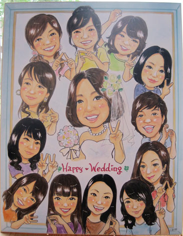 今回はウェディングの大型作品です。13人の似顔絵です。サイズはF6です。