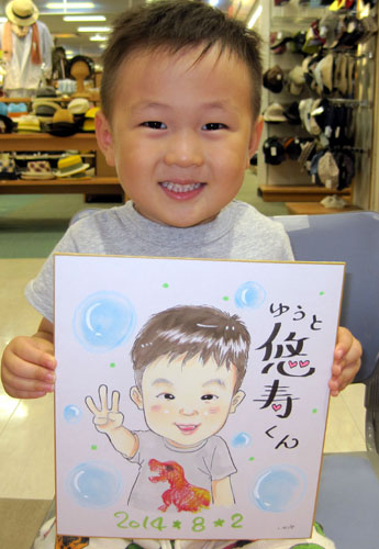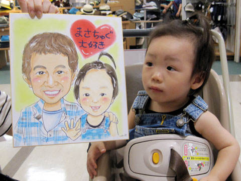 お友達通しのおやこ似顔絵です。ママと一緒の子どもさんの笑顔は本当にキラキラして可愛いですね〜。ぜひとも、又成長した時もお越し下さいませ〜。