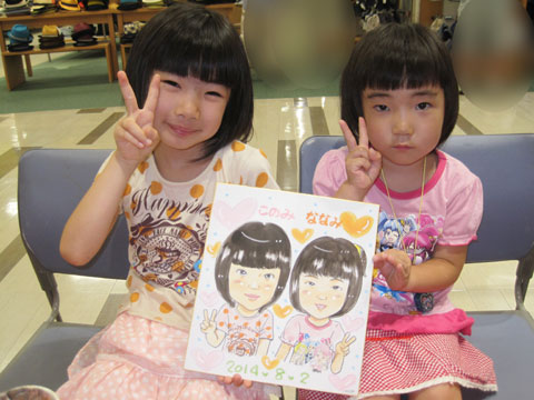 姉妹ちゃんたちの似顔絵。朝一番にお越し下さいました。ありがとうございました。