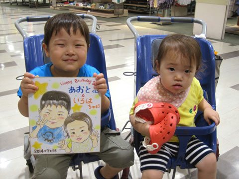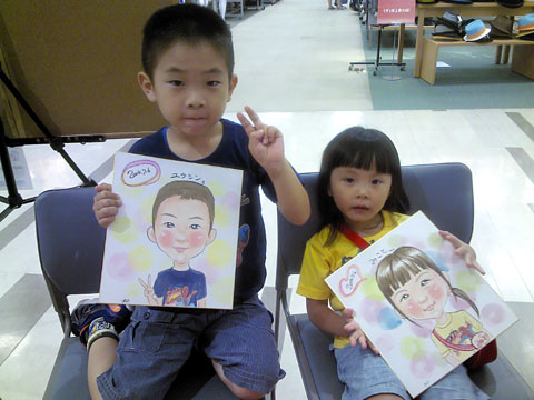 ☆兄弟くんで似顔絵。お写真の時には弟君はお疲れモードでお兄ちゃんだけですが、