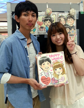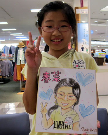 はじめての似顔絵だそうで。似顔絵と同じポーズでパチリ!ありがとうございました。