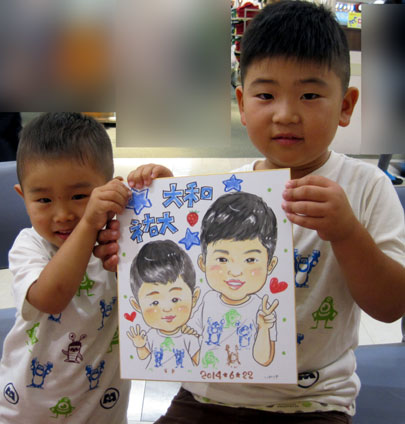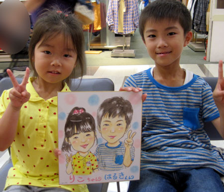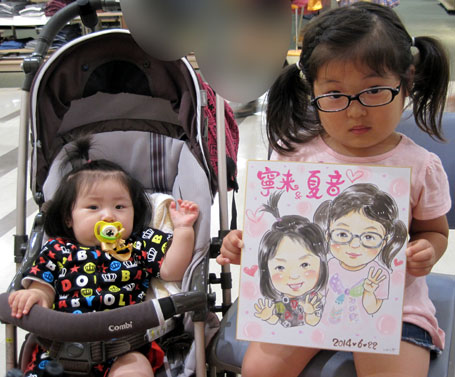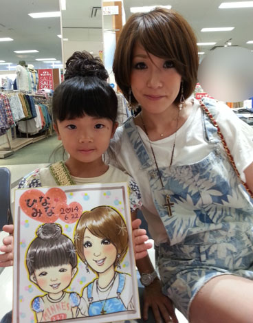 親子さんの似顔絵。若くて可愛いママさんで、姉妹みたいですね。ありがとうございました。