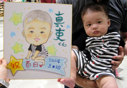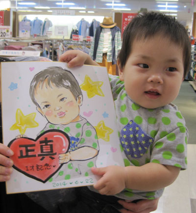 一才の記念に!お利口さんのおこさんで、機嫌良く似顔絵が出来るのを待っててくれまして、
