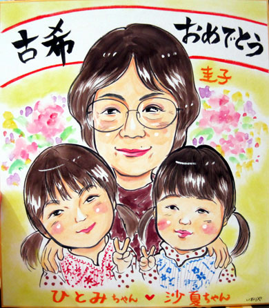 祖父母や両親、子どもさんなどのお祝い事や結婚式などのご予定も多いかとお思いますが、そんなチョットした贈り物に似顔絵はいかがですか?
