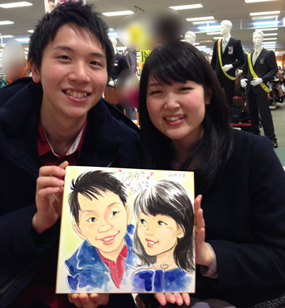 里帰りの記念に二人で似顔絵