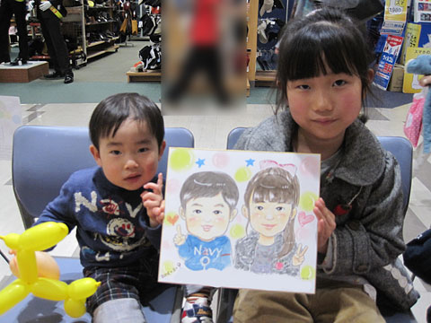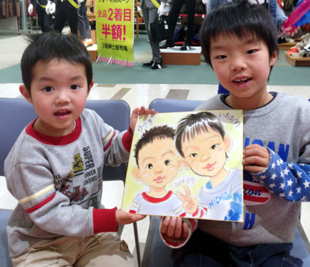 商業施設での似顔絵コーナーを開催。