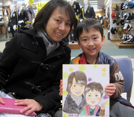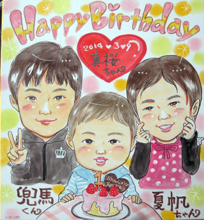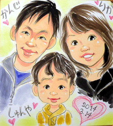 仲良し家族さんの似顔絵です。是非毎年の記念にお越し頂ければ幸いです。