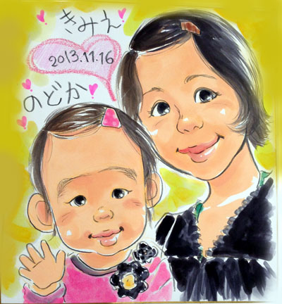姉妹かと思うような素敵な親子さん。はじめての似顔絵ということで楽しんで頂けましたでしょうか?