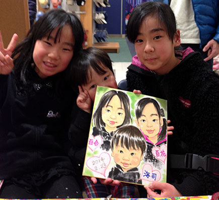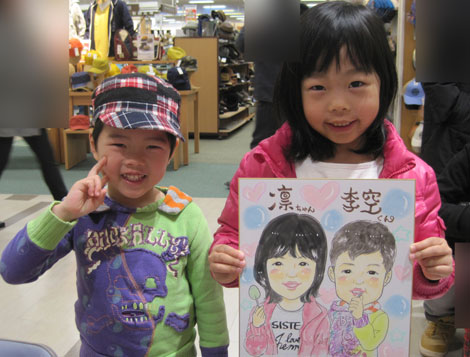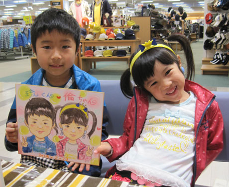 商業施設での似顔絵コーナーを開催。