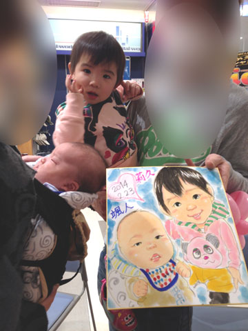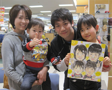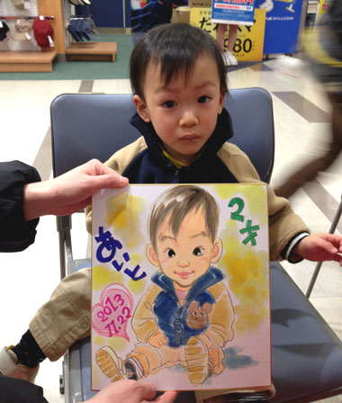ちょっと遠い所からお越しになりました。似顔絵は初めてと言う事で。