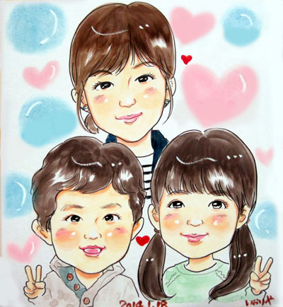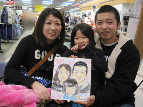 御家族様の似顔絵。このポーズは外せませんね。笑