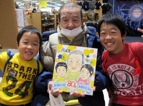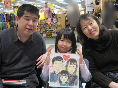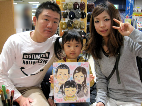 今年の初仕事は大変楽しゅうございました。リピーターのお客様も、初めてのお客様もみなさんキラキラと目を輝かせて似顔絵の出来上がってゆくのをご覧になっているのを、一緒に楽しませて頂きました。ありがとうございました。