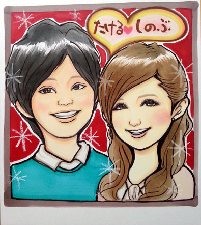 フレーム付の似顔絵でお一人様1000円 お二人様1800円です。