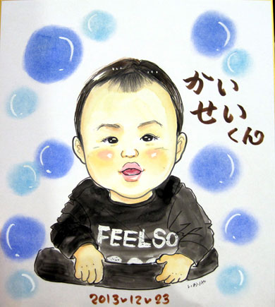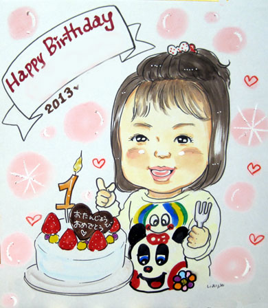 前回お兄ちゃんを描いて今回は、妹ちゃんの記念に。これからも元気に育って下さいね。