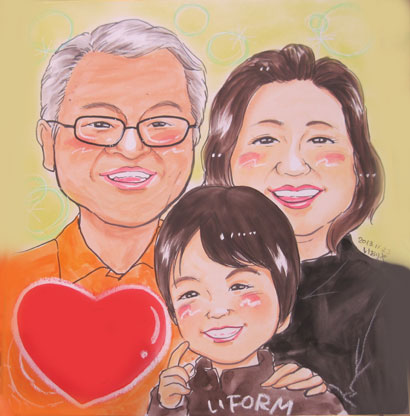 ☆お写真よりの似顔絵でした。可愛いお孫さんとの一枚になればいいですね。