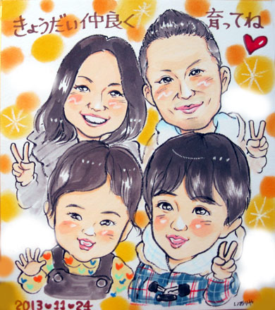★家族さんの似顔絵 その2。 コチラの姉妹ちゃんの家族はとっても笑顔が素敵さん。